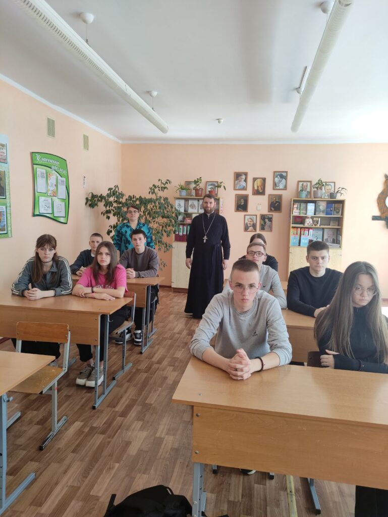 4 апреля 2025 года, настоятель храма Покрова Пресвятой Богородицы в агрогородке Радостово иерей Леонид Коледа встретился с учащимися 11 класса ГУО «Радостовская средняя школа».