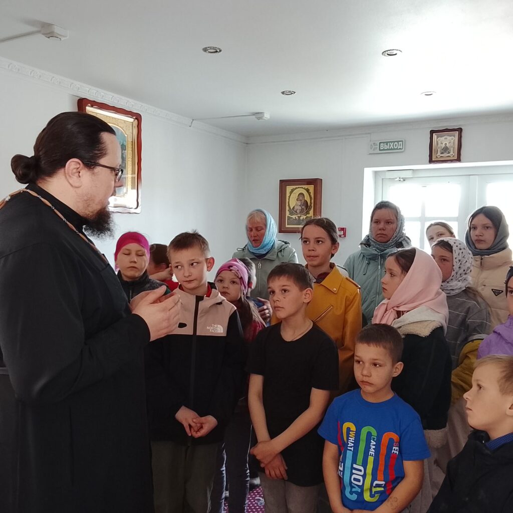 Дети внимательно слушали священника, задавали вопросы и получали на них краткие ответы.