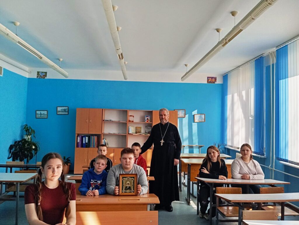 8 марта 2026 года настоятель храма святого Архангела Михаила в аг. Осовцы иерей Леонид Куровский встретился с учащимися 5 класса Осовецкой СШ. На встречу священник принёс икону святой блаженной Матроны Московской, обретение святых мощей которой Православная Церковь чтит именно в этот день, и рассказал ребятам житие святой угодницы Божией. Неизгладимый след в душах юных слушателей оставил рассказ о том, как слепая от рождения девушка, наделённая Богом дарам прозорливости и чудотворения исцеляла множество людей от телесных и душевных недугов, тем самым укрепляя их в вере Христовой. В завершение встречи все желающие задали вопросы священнику, после чего сфотографировались на память.
