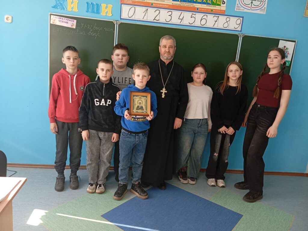 8 марта 2026 года настоятель храма святого Архангела Михаила в аг. Осовцы иерей Леонид Куровский встретился с учащимися 5 класса Осовецкой СШ. На встречу священник принёс икону святой блаженной Матроны Московской, обретение святых мощей которой Православная Церковь чтит именно в этот день, и рассказал ребятам житие святой угодницы Божией. Неизгладимый след в душах юных слушателей оставил рассказ о том, как слепая от рождения девушка, наделённая Богом дарам прозорливости и чудотворения исцеляла множество людей от телесных и душевных недугов, тем самым укрепляя их в вере Христовой. В завершение встречи все желающие задали вопросы священнику, после чего сфотографировались на память.
