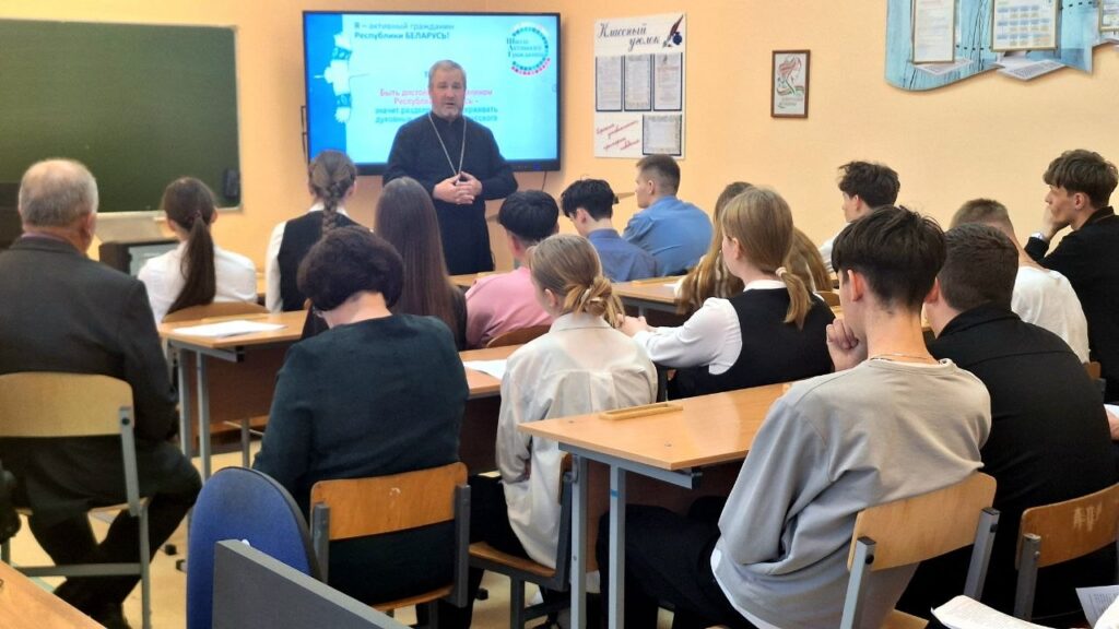 31марта 2026 года настоятель храма святого Архангела Михаила в агрогородке Осовцы иерей Леонид Куровский посетил Осовецкую среднюю школу и принял участие в работе «Школы активного гражданина». Перед учащимися 8-11 классов священник выступил со словом на тему «Духовные ценности белорусского народа». Своё выступление священнослужитель начал в рассказаза об истоках Православия на землях Белой Руси, рассказал слушателям о святой преподобной Евфросинии Полоцкой и её духовно-просветительской деятельности. Речь также шла о традиционных семейных ценностях белорусов. Особый акцент был сделан на важности активной гражданской позиции каждого молодого жителя нашей страны в определении будущего развития белорусского общества.