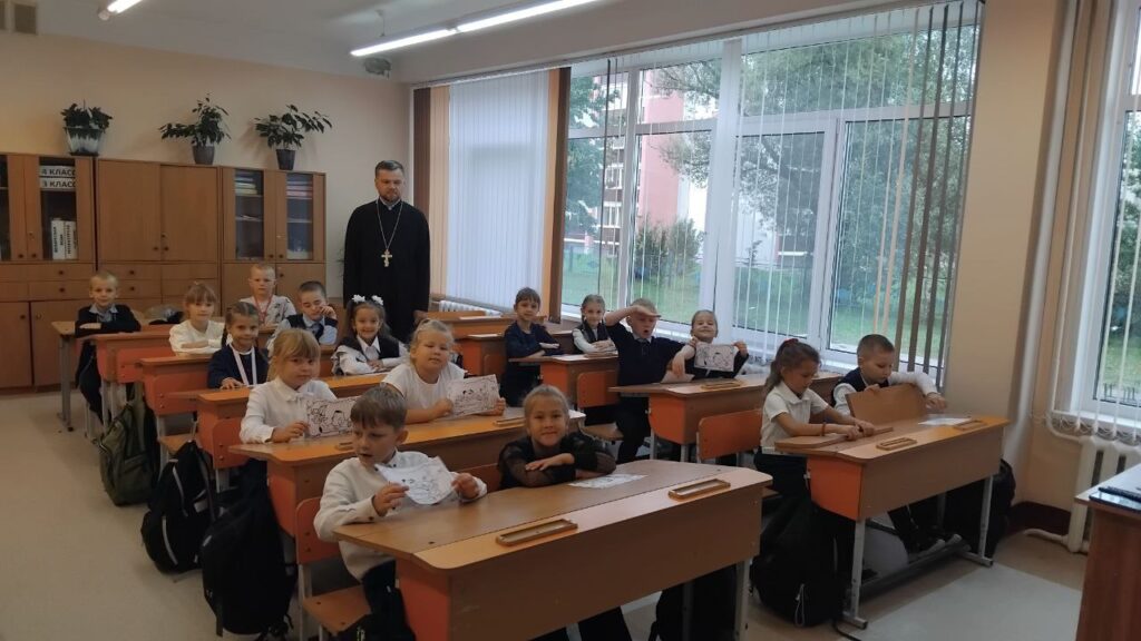 23 сентября 2025 г. у учащихся 1 «В» класса средней школы №1 г. Дрогичина состоялась встреча с клириком храма Сретения Господня в г. Дрогичине иереем Александром Полоско. К ребятам в гости пришел священник, чтобы поговорить о таких важных вещах, как благодарность и послушание.