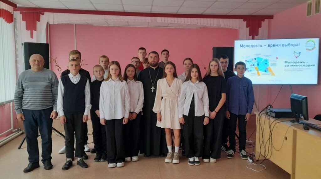24 сентября 2024 года настоятель храма Покрова Пресвятой Богородицы, иерей Леонид Коледа, посетил ГУО «Радостовская средняя школа», где состоялась встреча с учениками 8-11 классов, посвященная единому дню информированию в рамках информационно-образовательного проекта «ШАГ»: «Молодость — время выбора. Молодежь — за милосердие». Отец Леонид рассказал учащимся что такое милосердие в христианском понимании.