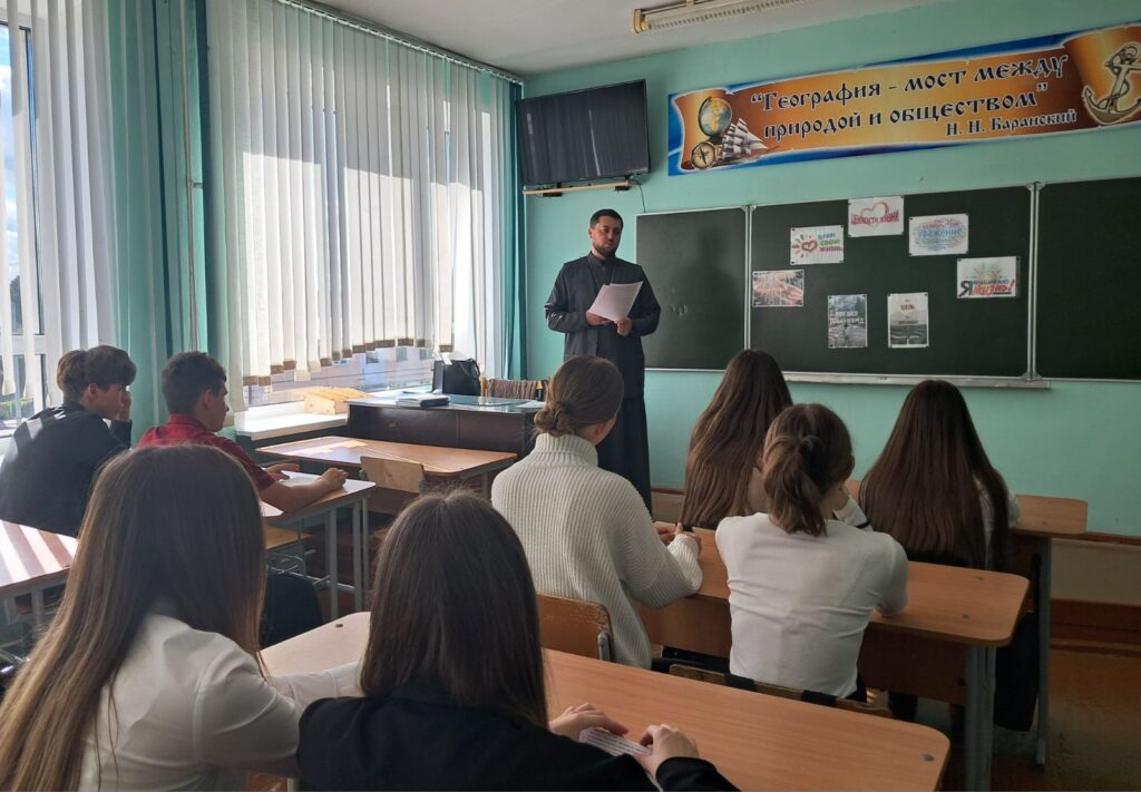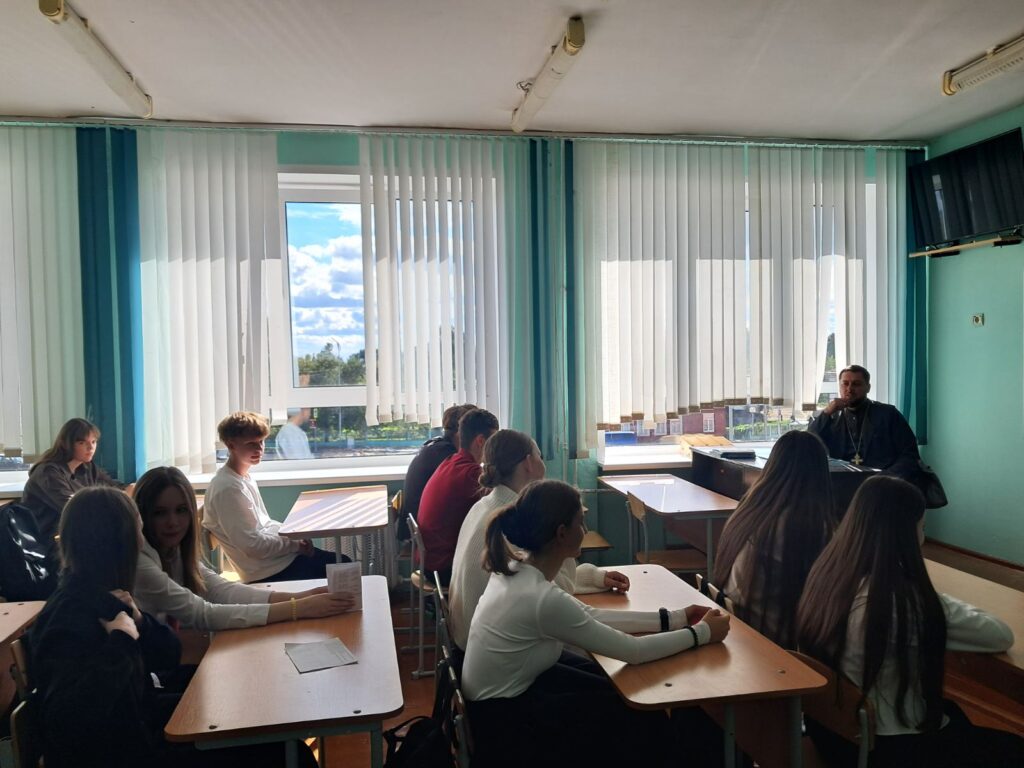 24 сентября 2025 г. в ГУО «Средняя школа №2» прошла встреча со священником храма прп. Евфросинии Полоцкой в г. Дрогичине иереем Димитрием Гречко на тему «В чем ценность жизни?». В качестве слушателей выступили ученики 10 класса.