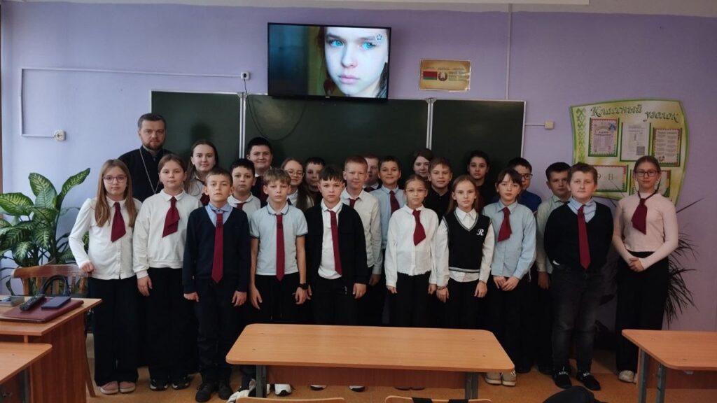 2 декабря 2025 г. в средней школе №1 г. Дрогичина прошла встреча клирика храма Сретения Господня в г. Дрогичине иерея Александра Полоско с учащимися 5 «А» класса. Тема беседы «Быть другом: ответственность, верность и жертвенность».