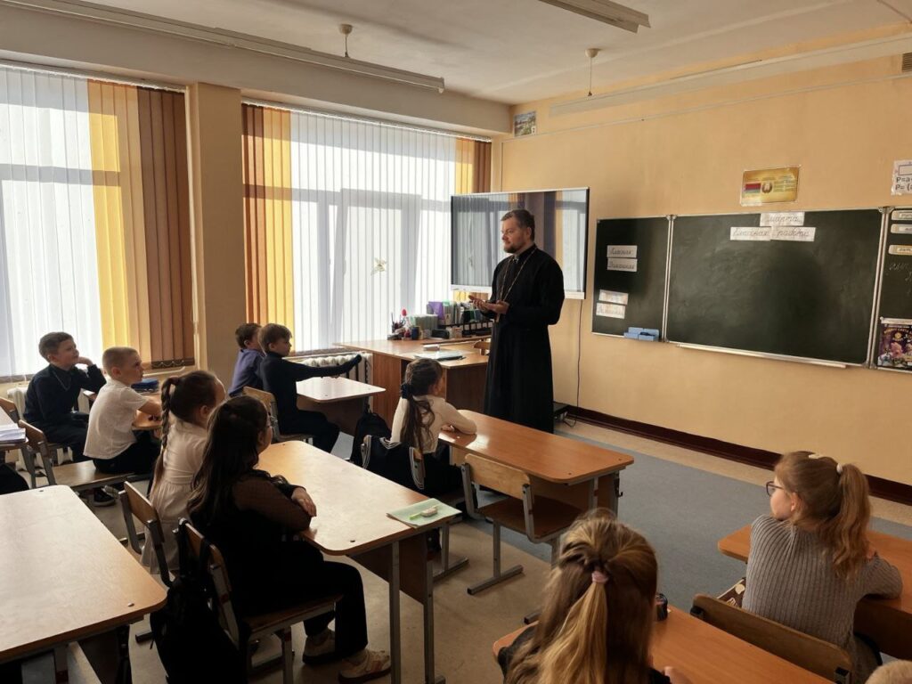 Священник рассказал школьникам о том, как важно сохранять внутреннюю чистоту и доброту, ведь именно они делают по-настоящему красивым и самого человека, и окружающий его мир. Дети с удовольствием поучаствовали в разговоре, обсуждая простые, но важные жизненные истины.