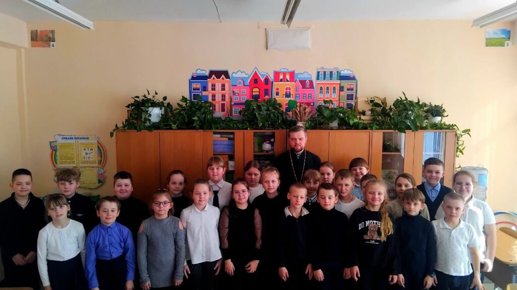 3 марта 2026г. в средней школе №1 г. Дрогичина прошла встреча священника с учащимися 3 «Г» класса. Клирик храма Сретения Господня иерей Александр Полоско побеседовал с детьми на тему «Красота моей души — красота вокруг».