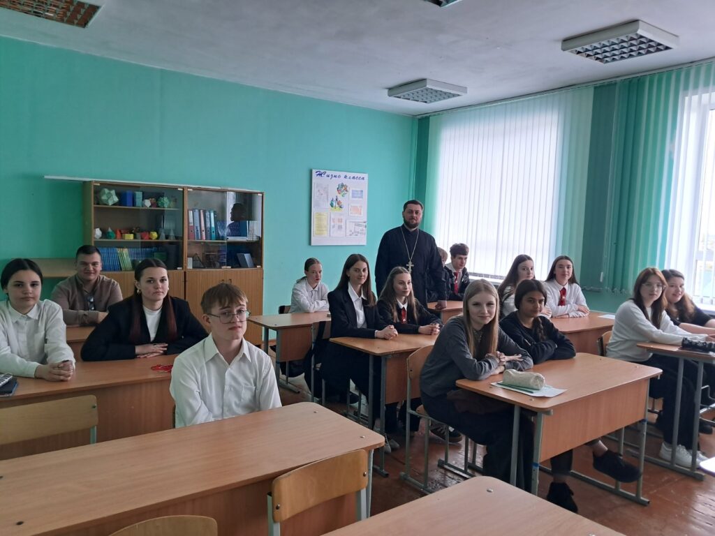 29 апреля 2026 г. в ГУО «Средняя школа №2 г. Дрогичина» прошла встреча священника храма прп. Евфросинии Полоцкой в г. Дрогичине иерея Димитрия Гречко с учениками 10 класса.