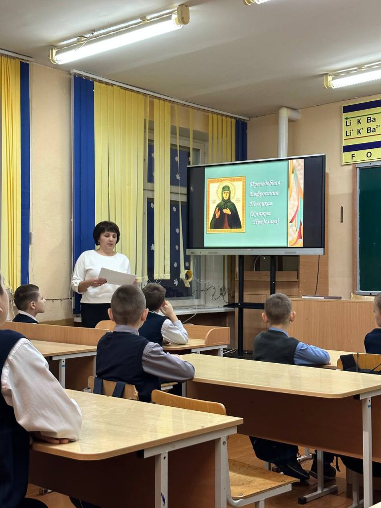20 декабря 2023 г. в ГУО «Гимназия г. Дрогичина» в 6-м классе и в ГУО «Средняя школа №2 г. Дрогичина» в 5 классе прошли уроки, посвященные 850-летию преставления преподобной Евфросинии Полоцкой.